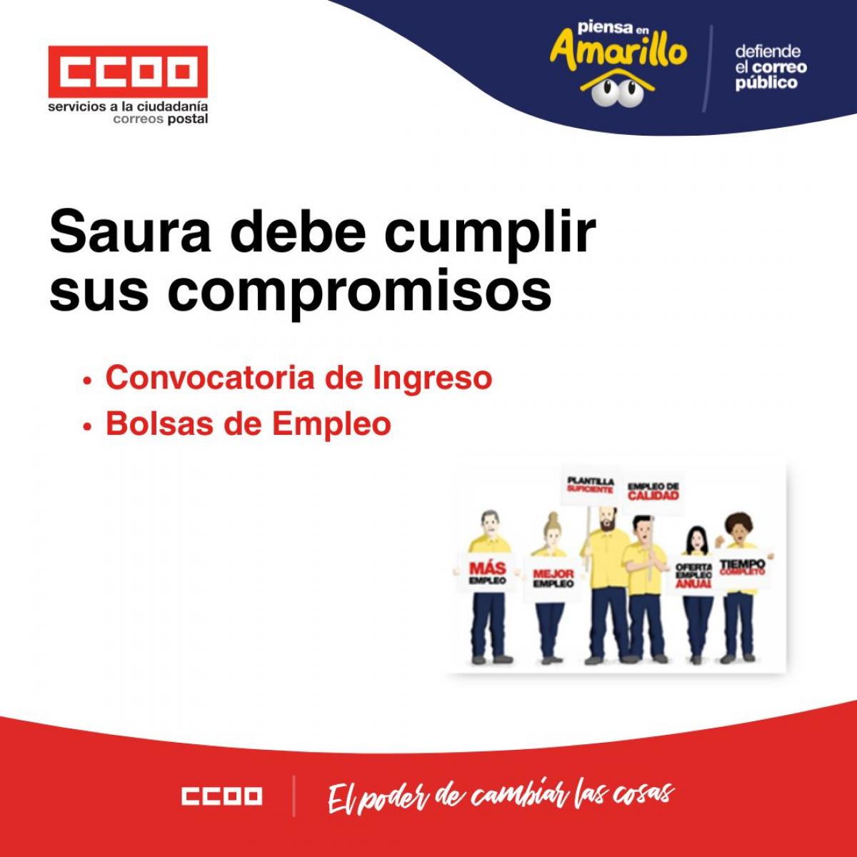 El 31 de julio, el presidente, Pedro Saura, asumió personalmente -y así lo afirmó- los compromisos que se plasmaron en el Acuerdo suscrito con CCOO -primer sindicato en Correos, con el 40% de representación-, CSIF y UGT -en total, más del 70% de la representación sindical-; en el que se recogían los siguientes compromisos: